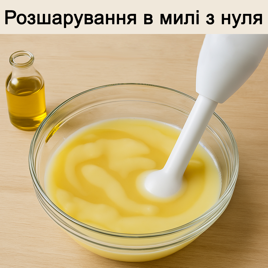 Це коли олія відокремлюються від мильної маси під час змішування. Якщо ароматична олія має позначку, що може викликати розшарування, це означає, що є ризик відокремлення олії. У такому випадку необхідно ретельніше перемішувати масу, особливо на початкових етапах, щоб забезпечити рівномірну емульсію та уникнути подальшого розшарування.
